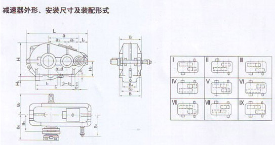 5、減速器有九種傳動比,九種配置型式和三種低速軸軸端型式。